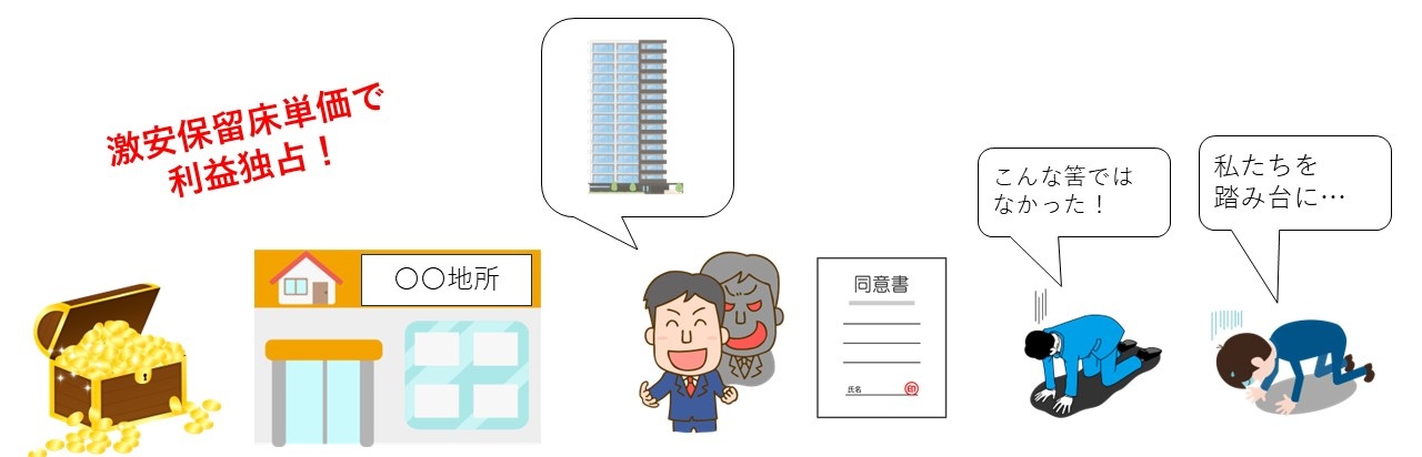 再開発業者側が恐れるのは、この実態を地権者に気付かれることです。