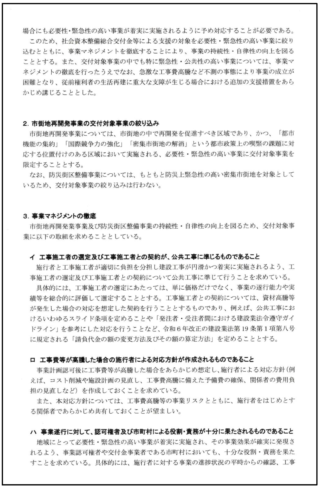 今回の要綱改正では、「補助金対象」となる再開発案件が「必要性・緊急性の高い事業」に絞り込まれると同時に、補助金交付の判断基準として